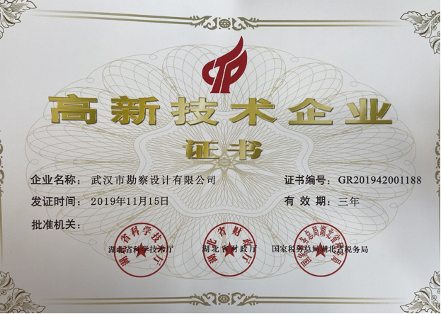 2020年7月8日,我司國(guó)家高新技術(shù)企業(yè)再認(rèn)證申報(bào)材料順利通過湖北省科學(xué)技術(shù)廳、湖北省財(cái)政局和國(guó)家稅務(wù)總局湖北省稅務(wù)局最終審核,再次取得了國(guó)家高新技術(shù)企業(yè)證書,為我司今后能夠順利承接各類建設(shè)工程項(xiàng)目提供了有力的保障。