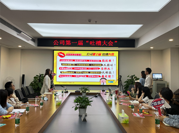 本次吐槽大會主要目的是加強公司職能部門與各生產部門之間的溝通交流,進一步發現工作中的問題,促進工作效率和工作管理水平的提升。為了本次吐槽大會開的更加接地氣,效果更佳,綜合部(黨群工作部)前期通過辦公云平臺(KC平臺)、意見箱匿名收集意見,各生產部門都進行了內部槽點征集、吐槽代表選派和吐槽文稿撰寫,有的甚至幾易其稿。為了增強現場表現力,相關部門內部還組織了頭腦風暴,并在網上搜集學習了吐槽技巧。