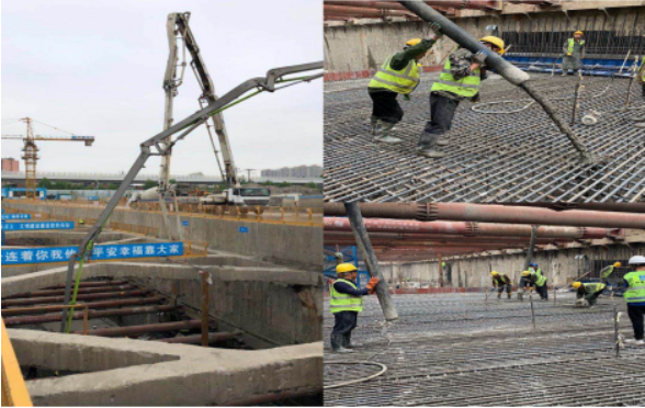 漢口濱江國(guó)際商務(wù)區(qū)地下環(huán)路首塊底板澆筑成功